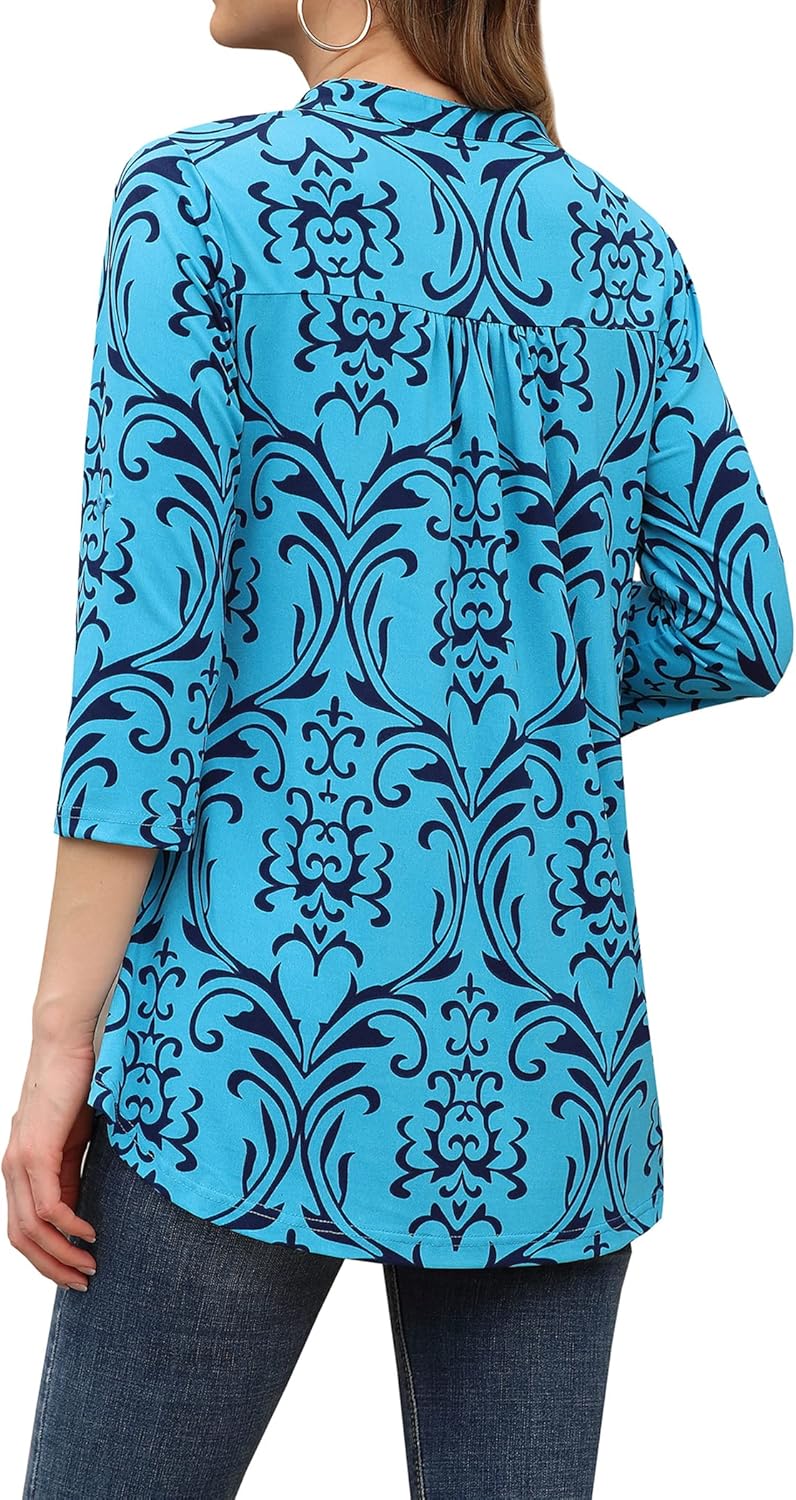 3/4 Sleeve Tops for Women Dressy Work Office Shirts Ladies Loose Flowy Tunics