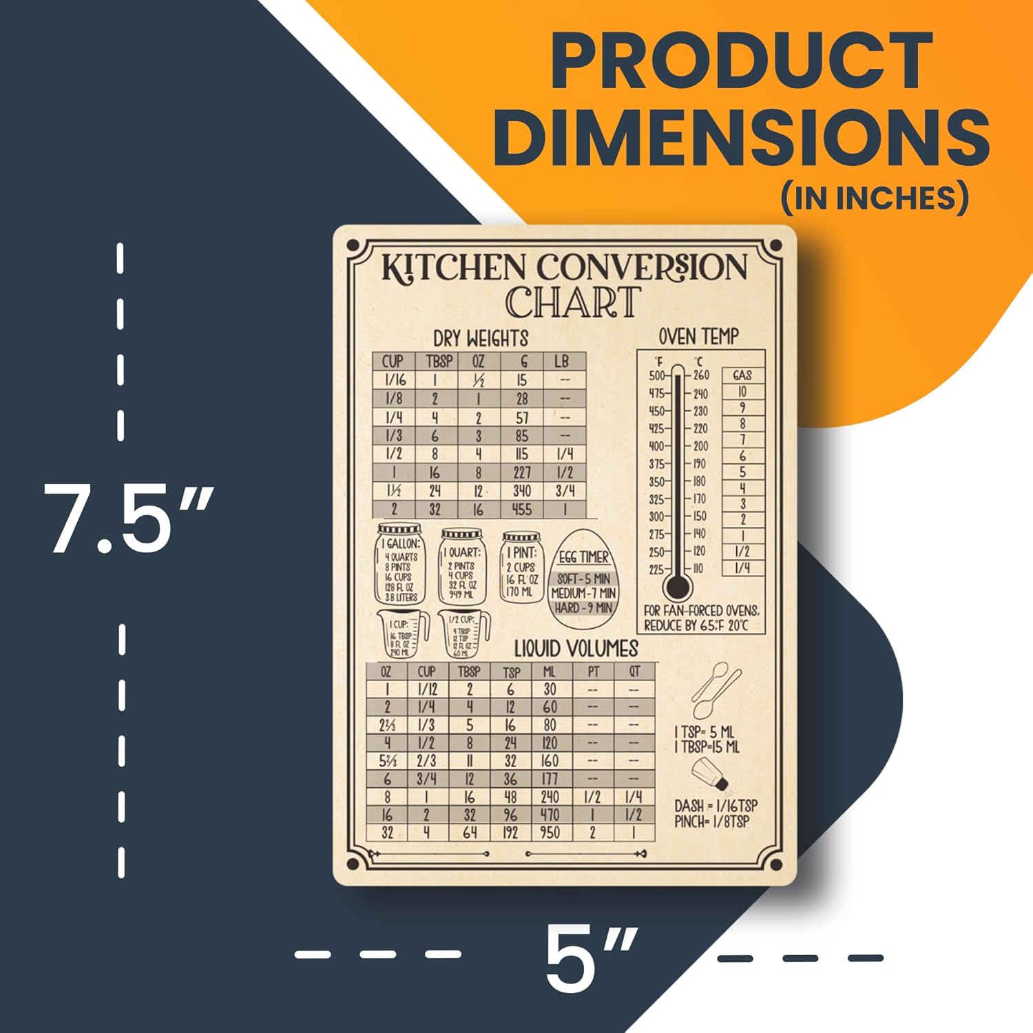 All-in-one kitchen conversion chart; simplify cooking with our comprehensive kitchen conversion chart magnets. Easily convert measurements for ingredients, making recipe prep a breeze. Stick them within sight of your prepping area for a quick reference.