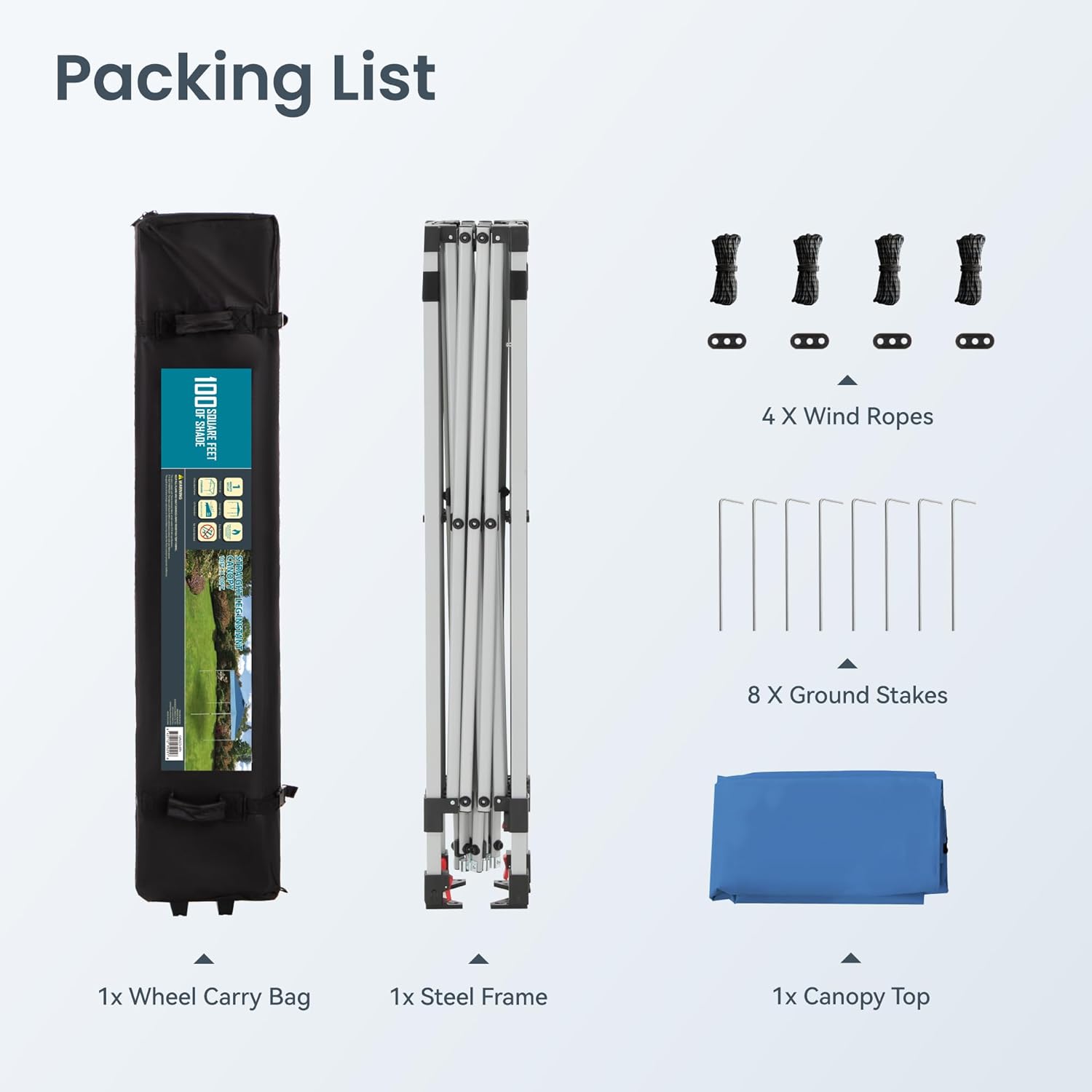 Superior Quality: The premium 10x10ft pop-up canopy is made of CPAI-84 flame resistant 150D oxford cloth with PU coating, as well as a stainless steel frame. The improved fabric is UV coated to reflect 99% of harmful sun rays and is water-resistant.