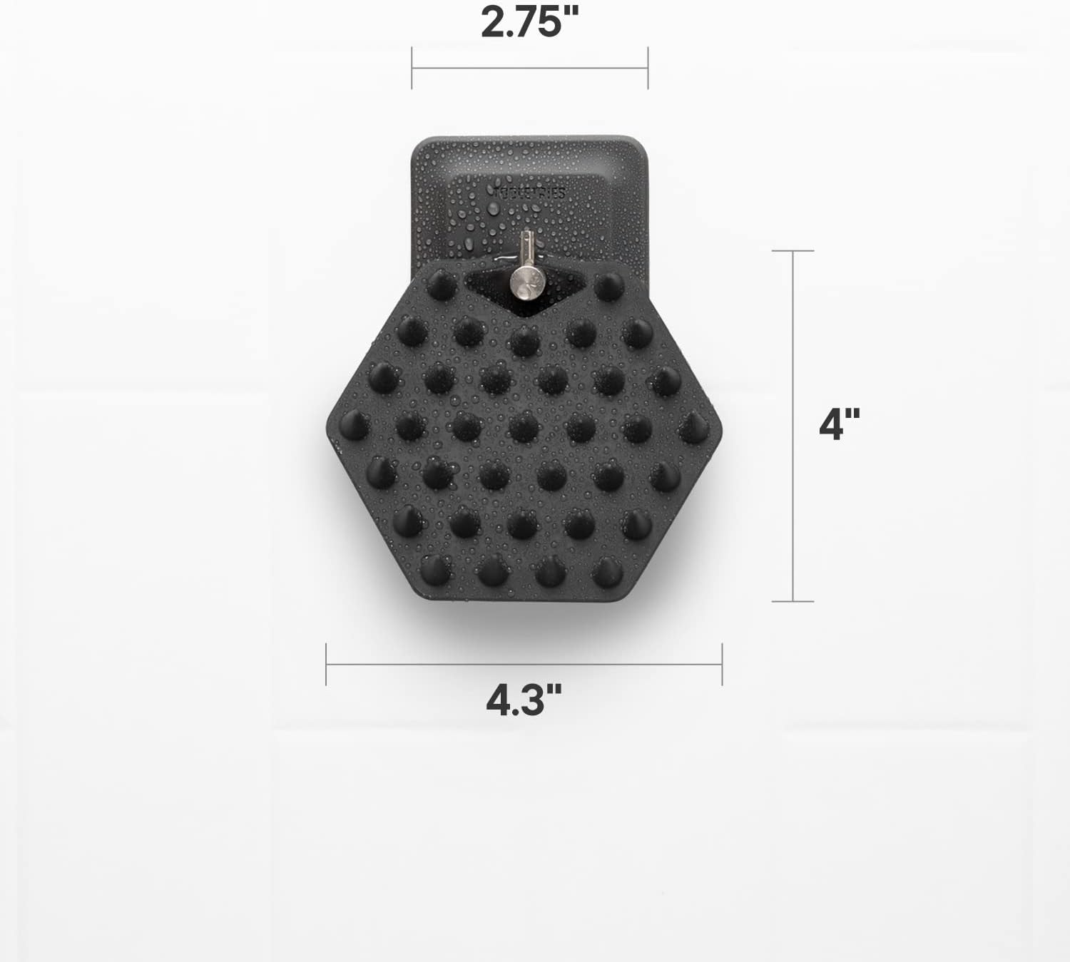 PRODUCT DIMENSIONS – The Scalp Scrubber comes in at 4.3″ x 4″ x 2″ / 10.9cm x 10.2cm x 5.1cm and the shower hook is conveniently sized at 2.75″ x 2.75″ / 7cm x 7cm making the set easy to store, install, and take with you when you travel
